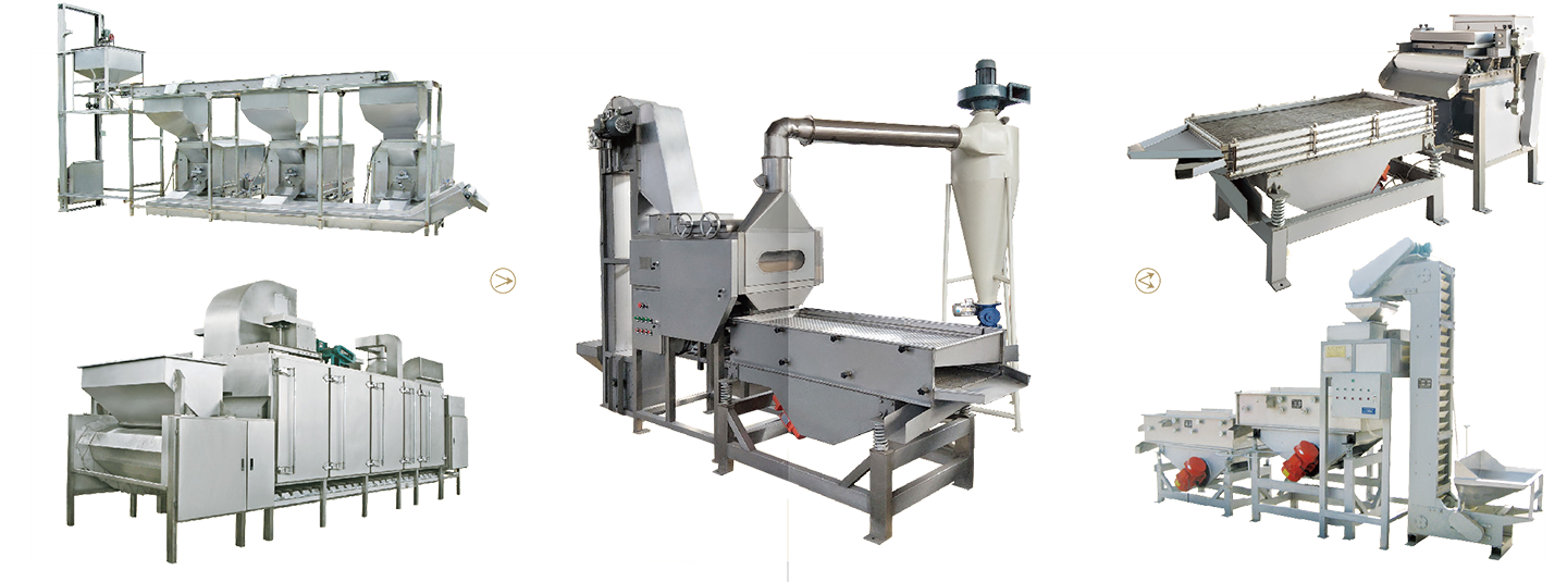 該生產(chǎn)線是將烘烤后的堅果去皮,進(jìn)行不同粒度的切碎分級的加工設(shè)備;如:花生碎、核桃碎等。還可用于各種干燥后的果蔬類、餅干類等切碎切粒,廣泛用于各種糕點、餡料、調(diào)味品等產(chǎn)品。