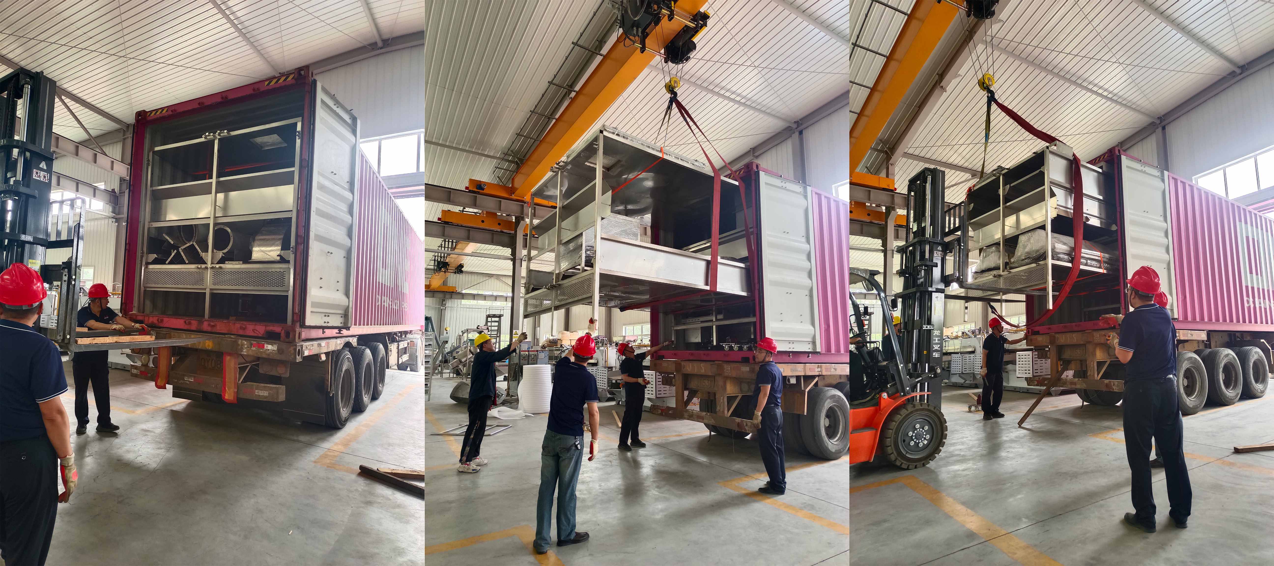 國外客戶的多功能連續(xù)烤爐發(fā)貨了!本次發(fā)貨共4 個(gè)集裝箱,發(fā)貨工作正緊張而忙碌地進(jìn)行著?,F(xiàn)場一片熱火朝天的景象,每一個(gè)環(huán)節(jié)都在有條不紊地推進(jìn)。