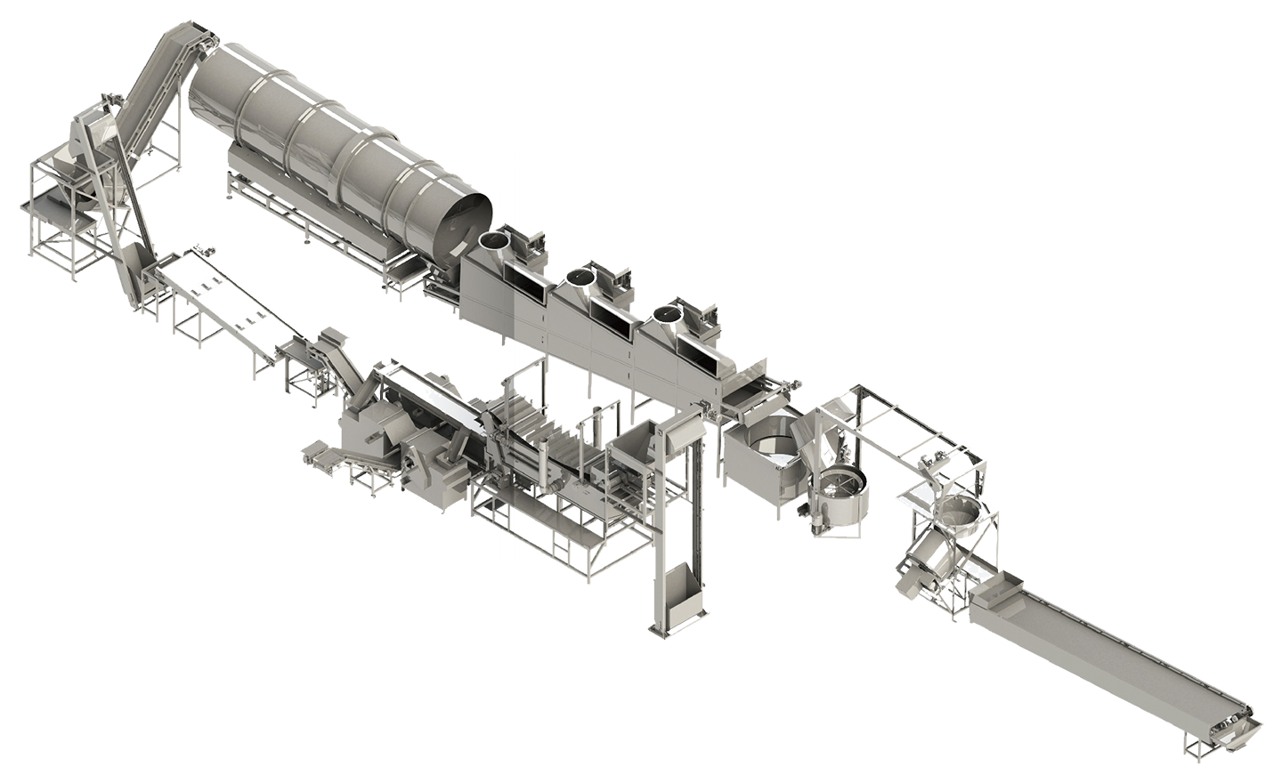 該生產(chǎn)線(xiàn)主要用于油炸花生米,麻辣花生、淮鹽花生等的油炸加工。生產(chǎn)線(xiàn)自動(dòng)化程度高,貼合傳統(tǒng)生產(chǎn)工藝,易清洗;產(chǎn)品色澤光亮、整仁率高、口感酥脆。