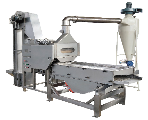 將經(jīng)烘烤/干燥過(guò)的花生米,進(jìn)行脫皮、分選的設(shè)備。主要應(yīng)用于花生醬、花生糖、花生奶/露、花生碎等產(chǎn)品的前期處理。